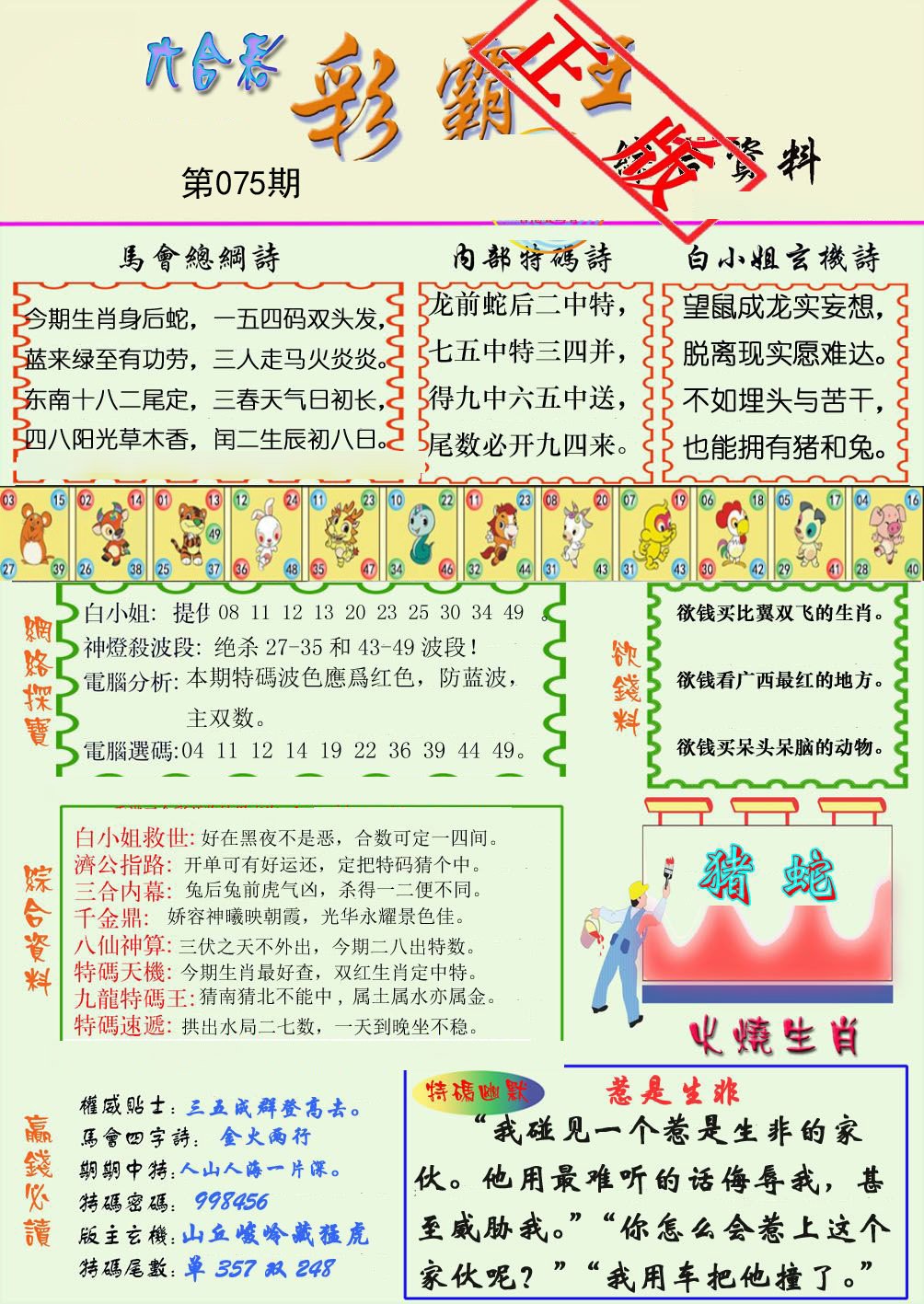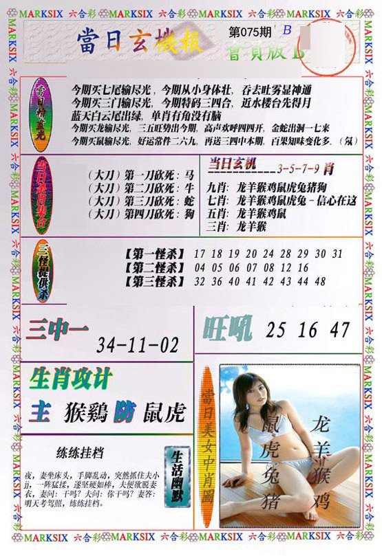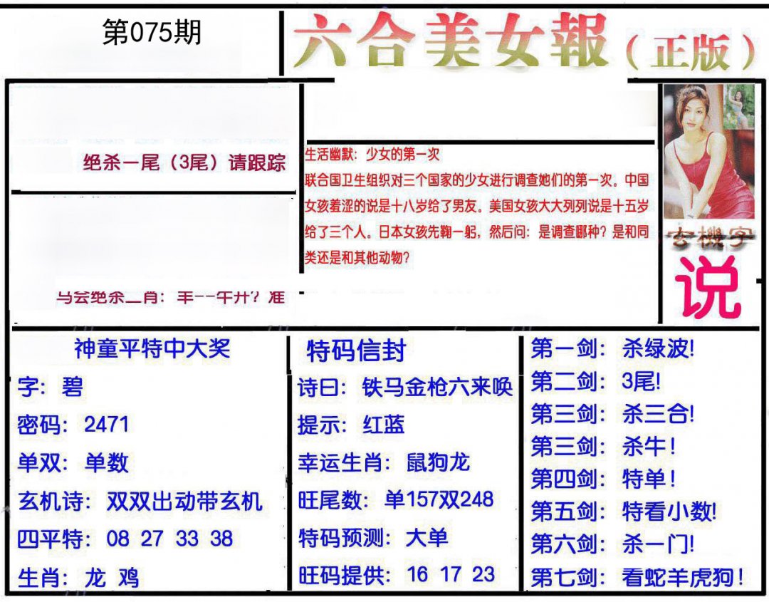 | 075期推荐一肖一码 (????) 信心100% | |