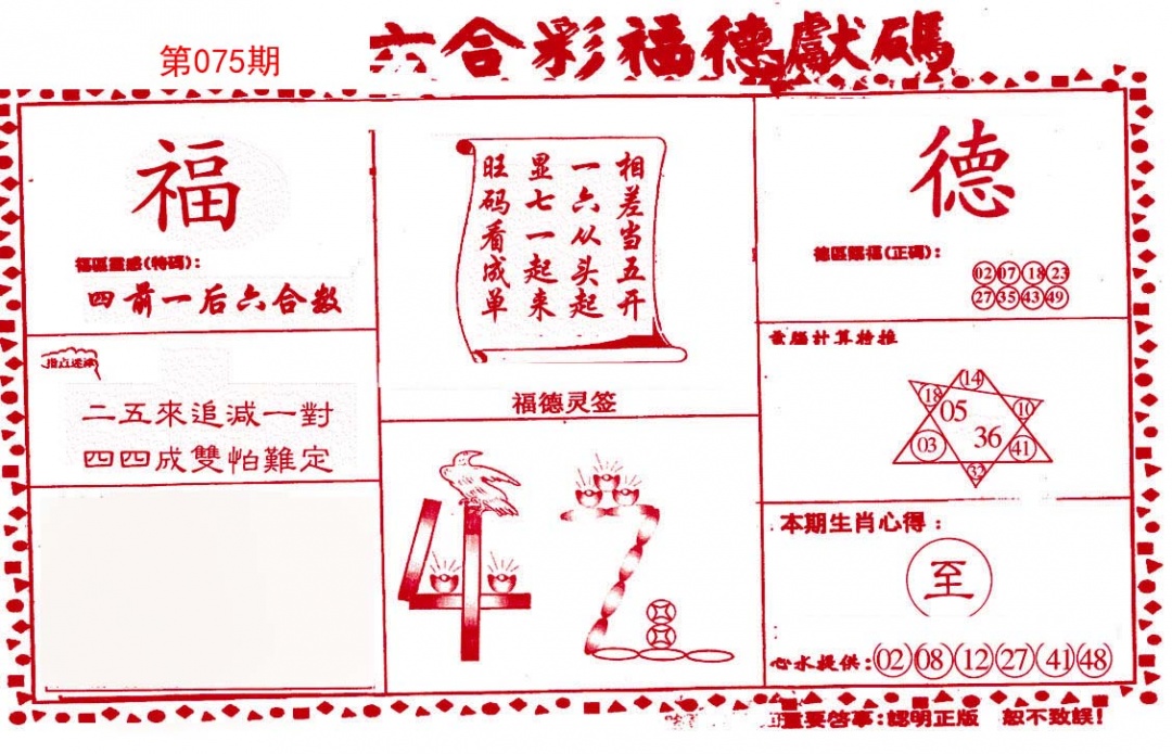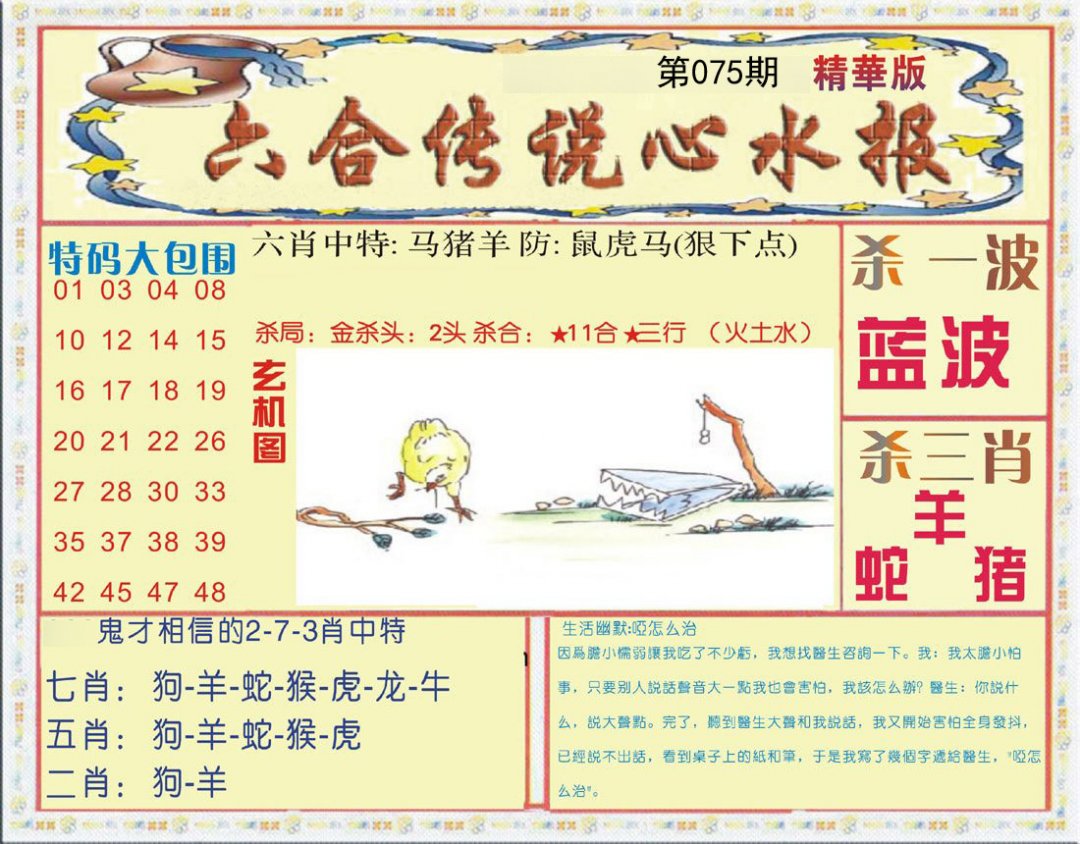 | 075期五肖:兔马狗羊蛇 | 五码:40.25.45.12.02 |