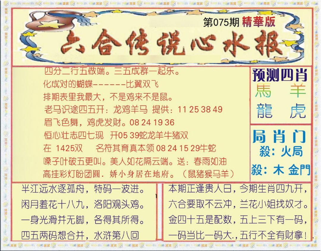 | 075期四肖:兔马狗羊 | 四码:40.25.45.12 |