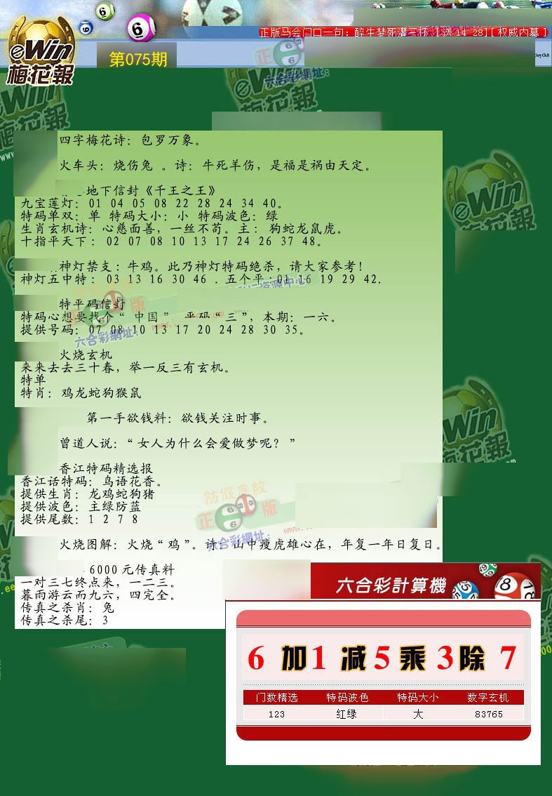 | 075期二肖:兔马 | 二码:40.25 |